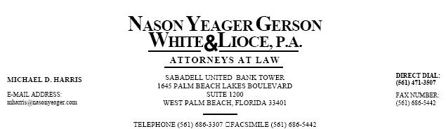 If you have any questions, please call me at 561-471-3507 or on my cell phone at 561-644-2222.