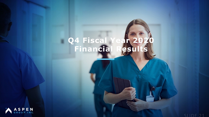 SAFE HARBOR STATEMENT Certain statements in this presentation and responses to various questions include forward - looking statements within the meaning of the Private Securities Litigation Reform Act of 1995, including statements relating to the future revenue opportunity related to the new pre - licensure campuses, the expected demand for healthcare workers, including registered nurses, our estimates concerning lifetime value of enrollments and the Marketing Efficiency Ratio, the expected launch of Aspen University’s Florida and Texas campuses and the expected rate of subsequent campus openings, future number of active students pe r campus and expected revenue run - rate per campus, fiscal year 2021 annual revenue forecast and expected EBITDA for fiscal year 2021. The words “believe,” “may,” “estimate,” “continue,” “anticipate,” “intend,” “should,” “plan,” “could,” “target,” “potential,” “is likely,” “will,” “expect” and similar expressions, as they re lat e to us, are intended to identify forward - looking statements. We have based these forward - looking statements largely on our current expectations and projections about fut ure events and financial trends that we believe may affect our financial condition, results of operations, business strategy and financial needs . Important factors that could cause actual results to differ from those in the forward - looking statements include our ability to obtain the necessary regulatory approvals to launch our future campuses in a timely fashion or at all, the continued ability of our EdTech platform to perform as expected, continued high demand for nurses, the continued effectiveness of our marketing efforts, national and local economic factors including the substantial impact of the CO VID - 19 pandemic on the economy, the competitive impact from the trend of major non - profit universities using online education, unfavorable regulatory changes, and o ur failure to continue obtaining enrollments at low acquisition costs and keeping teaching costs down. Further information on the risks and uncertainties affe cti ng our business is contained in our filings with the Securities and Exchange Commission, including our Annual Report on Form 10 - K for the fiscal year ended April 30, 2020. Any forward - looking statement made by us herein speaks only as of the date on which it is made. Factors or events that could cause our actual results to differ may em erge from time to time, and it is not possible for us to predict all of them. We undertake no obligation to publicly update any forward - looking statement, whether as a result of new information, future developments or otherwise, except as may be required by law . Regulation G - Non - GAAP Financial Measures. This presentation includes a discussion of Adjusted EBITDA, a non - GAAP financial mea sure. Certain information regarding this non - GAAP financial measure (including reconciliations to GAAP) is provided in our press release dated March 10, 2020 and on our website at www.aspu.com – Financial Information. Certain statements in this presentation and responses to various questions include forward - looking statements within the meaning Important factors that could cause actual results to differ from those in the forward - looking statements include Any forward - looking statement made by us herein speaks only as of the date on which it is made. Factors or events that could cau Regulation G - Non - GAAP Financial Measures. This presentation includes a discussion of Adjusted EBITDA, a non